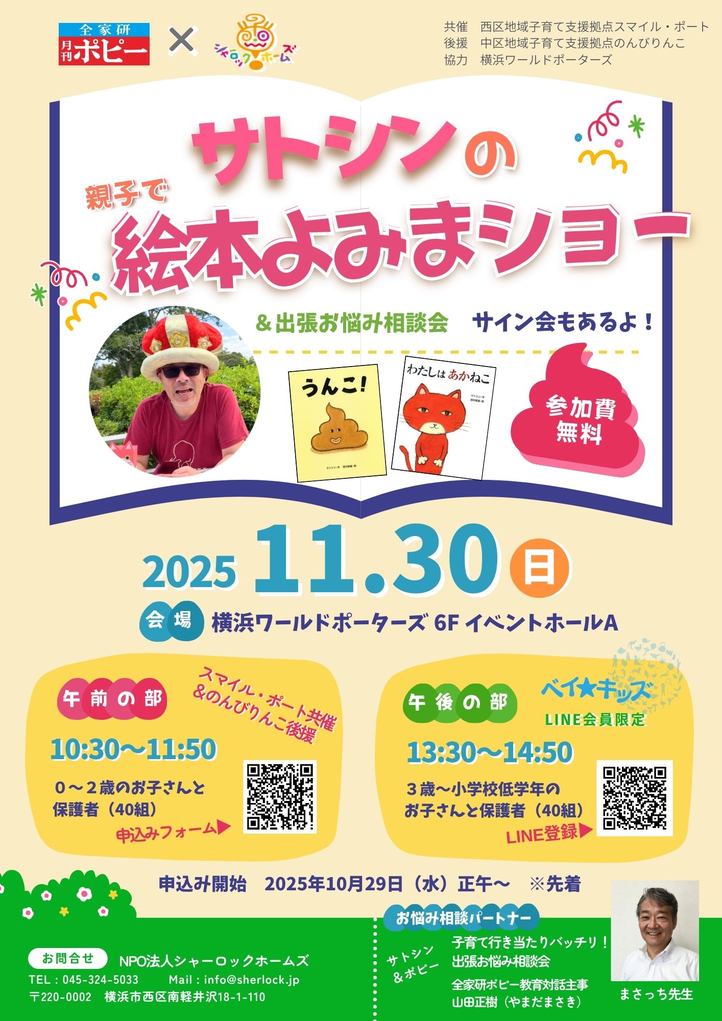 この関連企画として、ベイ★キッズを運営するNPO法人シャーロックホームズが主催となり、様々な方にご協力いただき、横浜の親子を応援する絵本イベントを開催することになりました!