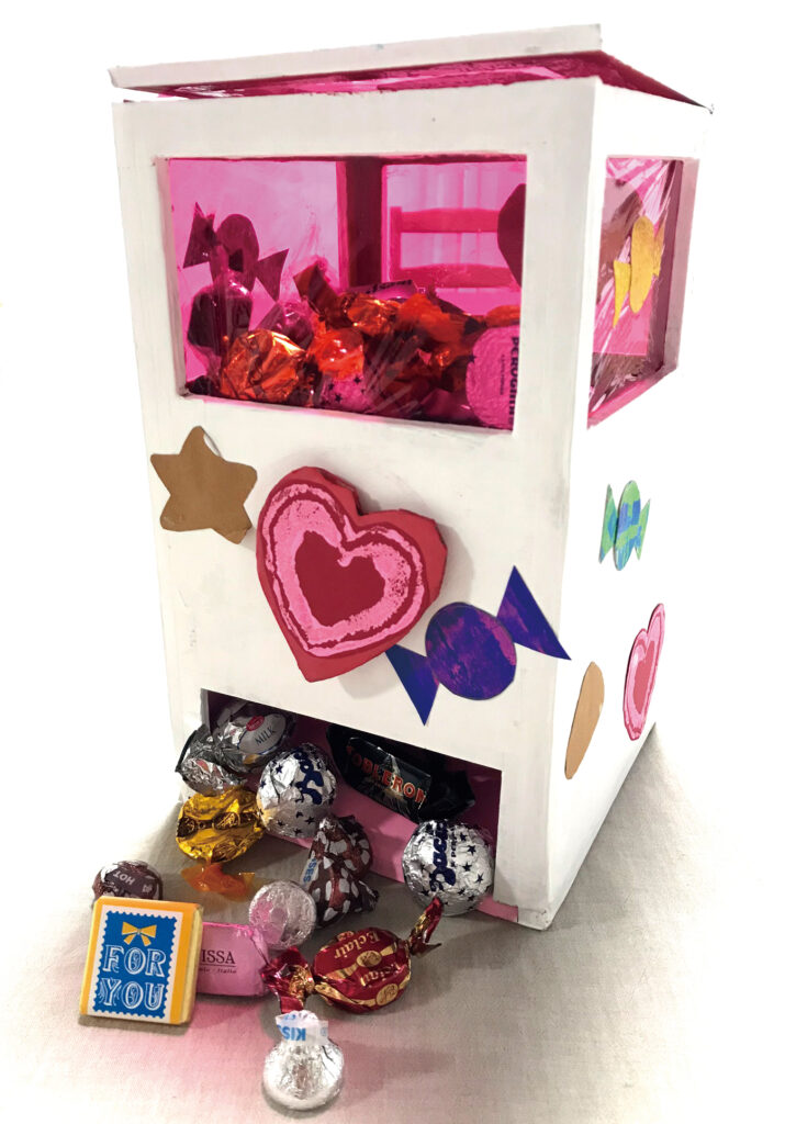 イングリッシュネイティブスピーカーの先生、日本人スタッフと一緒に、自分の得意分野をもっと深掘りして表現力を身につけるクラスです。今回はバレンタインとホワイトデーをテーマに、チョコレートガチャガチャマシンを一緒に作りましょう。